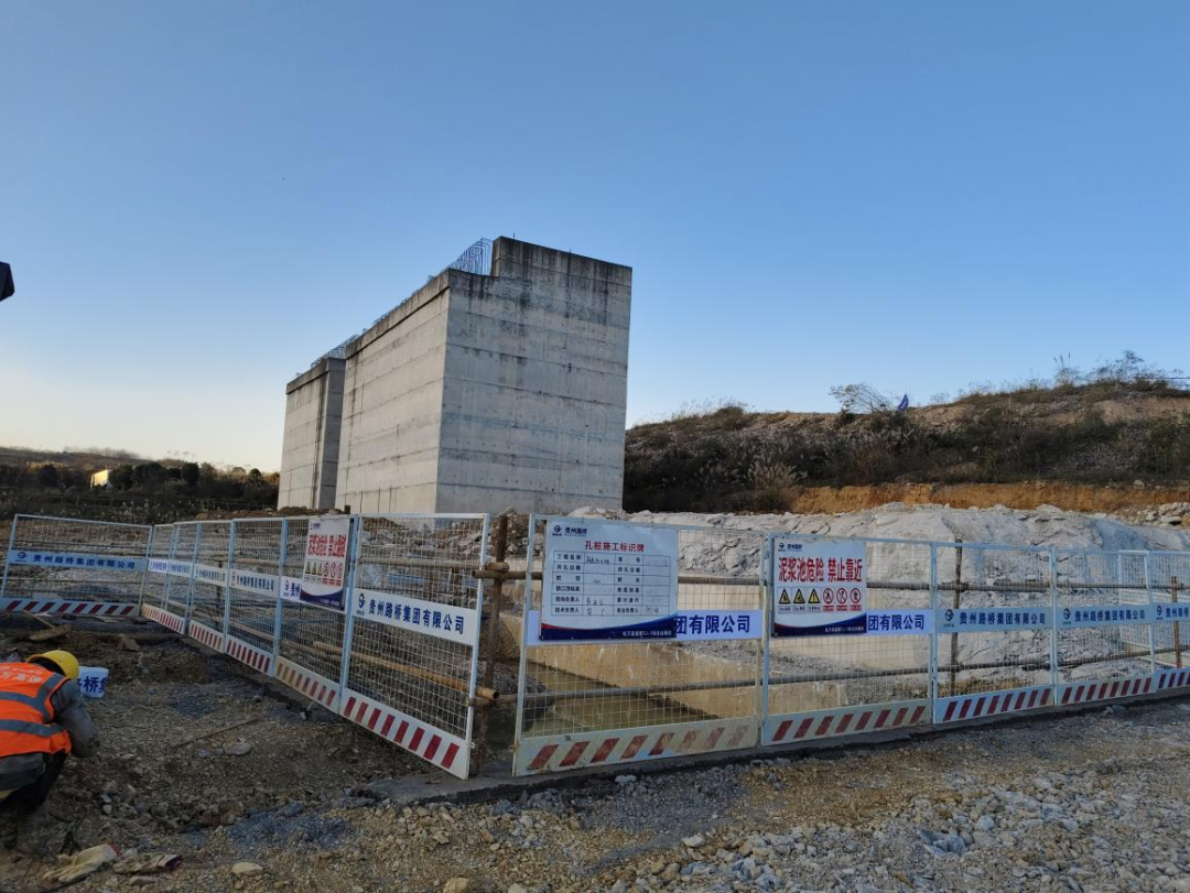 (4)铜仁东互通匝E桥:设计桩基39根,墩柱29根,盖梁10道,T梁30片,现浇箱梁6跨,累计完成桩基2根。