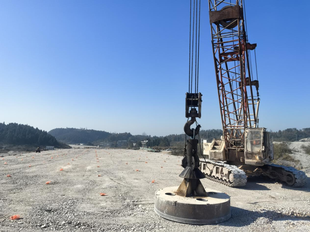 (2)K25+650~K27+800段路基正在进行土石方开挖及强夯施工,其中强夯段落为K26+060~K27+000,累计完成路基挖方5.97万方,强夯3.3万方。