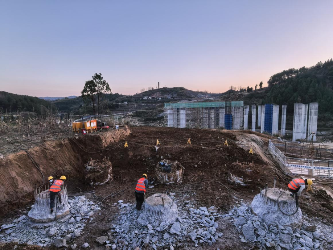 (2)锦江特大桥:设计桩基共249根,墩柱230根,盖梁110个,T梁共计690片,正在进行下构桩基旋挖成孔及冲击成孔施工,累计完成桩基78根。