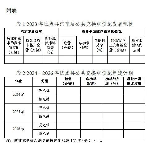 2024-2026年,按照“规划先行、场景牵引、科学有序、因地制宜”的原则,开展“百县千站万桩”试点工程,加强重点村镇新能源汽车充换电设施规划建设。中央财政将安排奖励资金支持试点县开展试点工作。省(自治区、直辖市,以下统称省)级层面要充分发挥统筹协调作用,把具体工作落实落细。地方各级有关部门要在土地、电价、服务费等方面积极出台相关政策,形成政策合力,有效补齐农村地区公共充换电基础设施短板,力争实现充换电基础设施“乡乡全覆盖”。